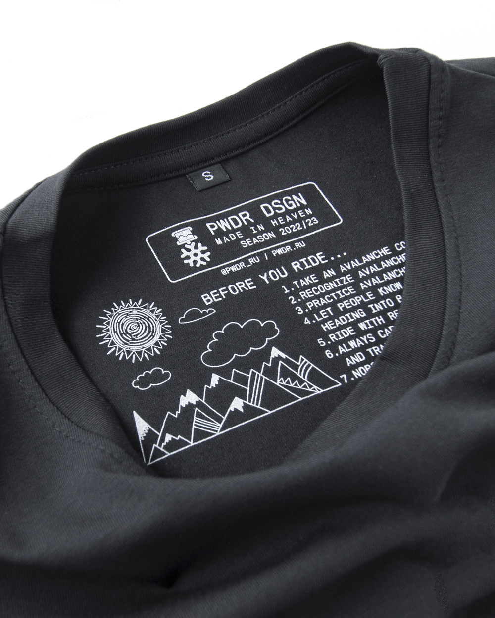 На данную футболку мы поместили чек-лист для тех, кто катается вне трасс.